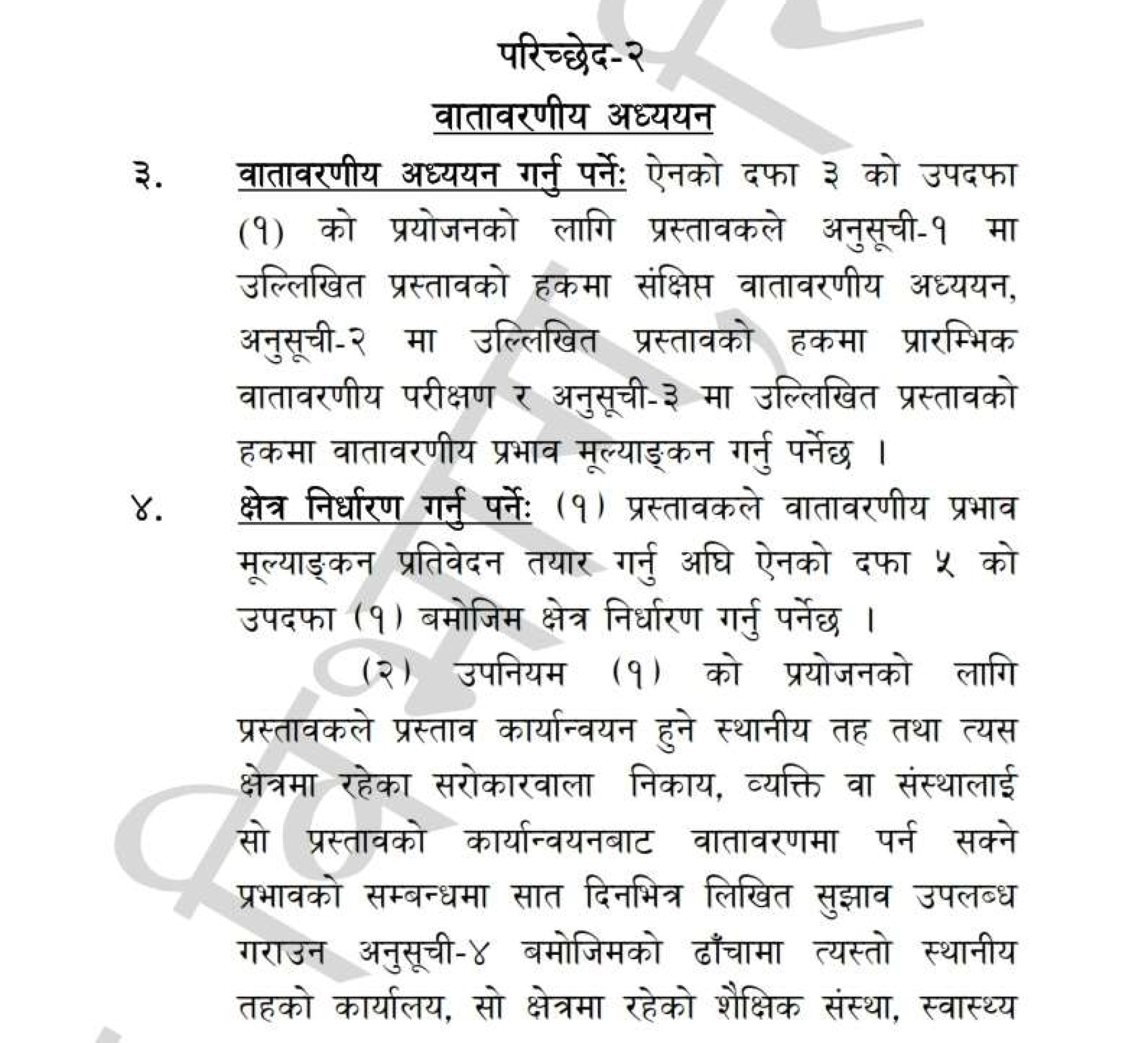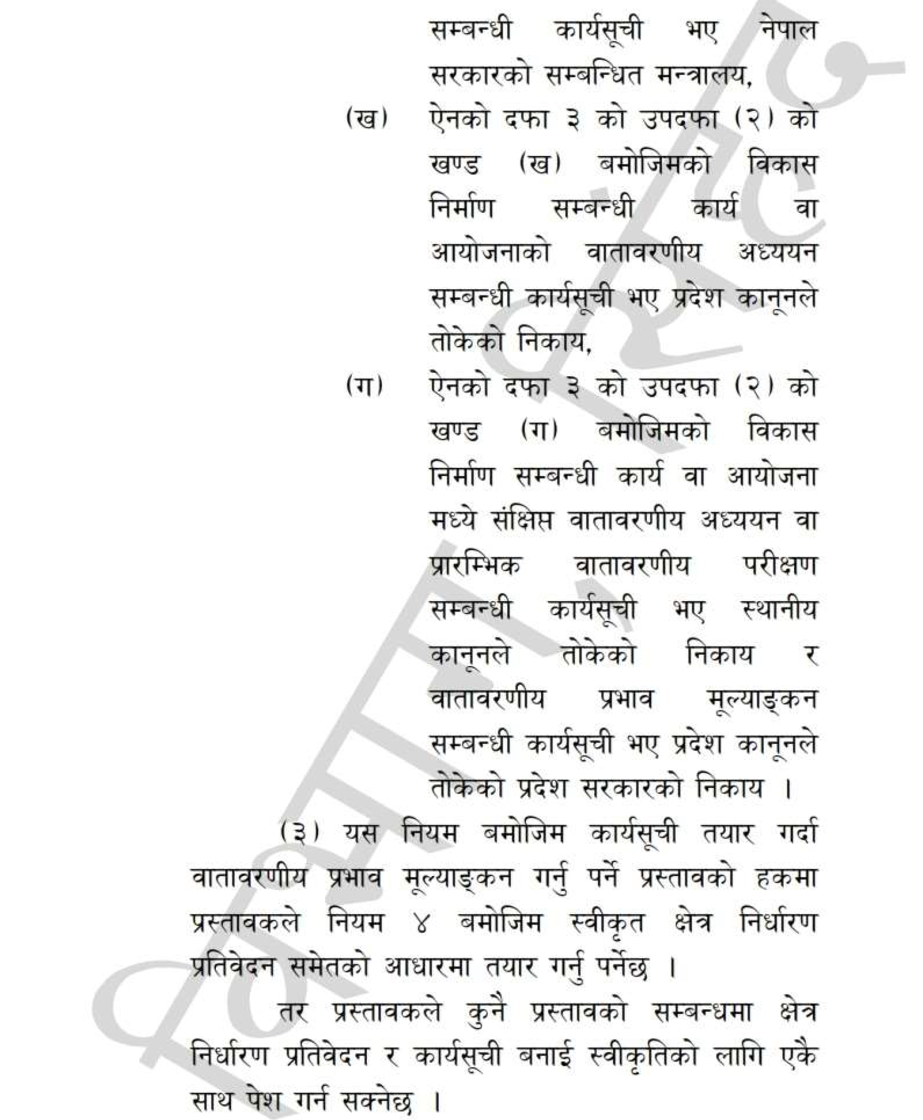 ऐनको प्रावधानमा स्पष्ट किटान गरिएको छ, प्रचलित कानून बमोजिमको वातावरणीय परीक्षण गर्नुपर्ने तर प्रदेश सरकारले गरेन ।