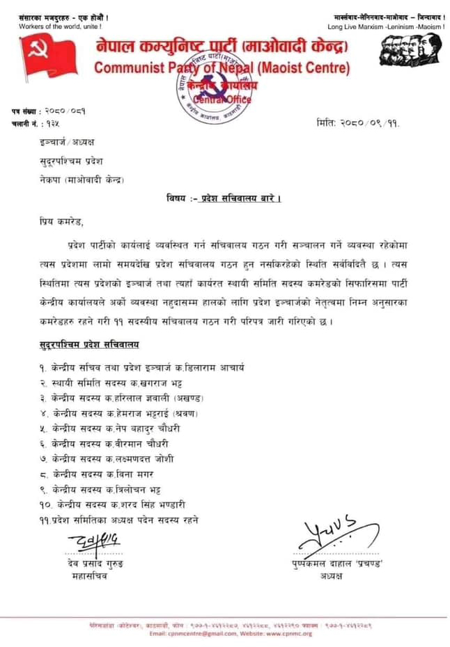 अध्यक्ष प्रचण्डले ‘सुटुक्क’ सचिवालय गठन गरेपछि सुदूरपश्चिम माओवादीमा तीव्र असन्तुष्टि